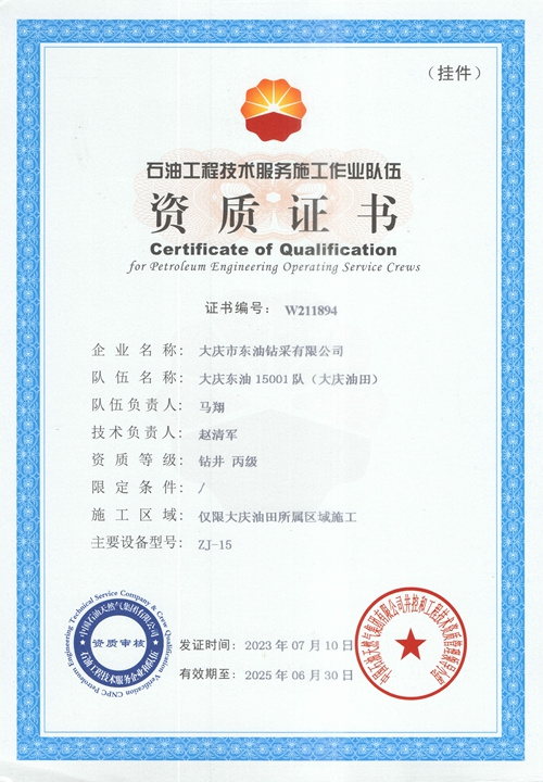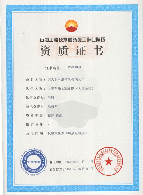大慶東油15001隊(duì)(大慶油田)資質(zhì)證書