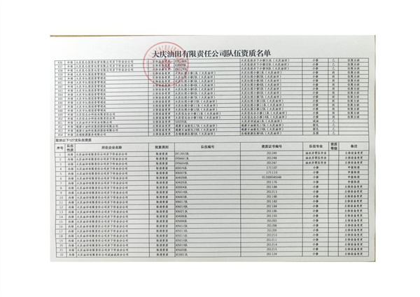 大慶東油15001隊(duì)(大慶油田)資質(zhì)證書