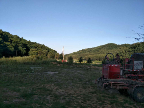 圖片新聞:公司院內(nèi)的地?zé)嵩囼?yàn)一井,下套管施工(2017年史文全報(bào)道)